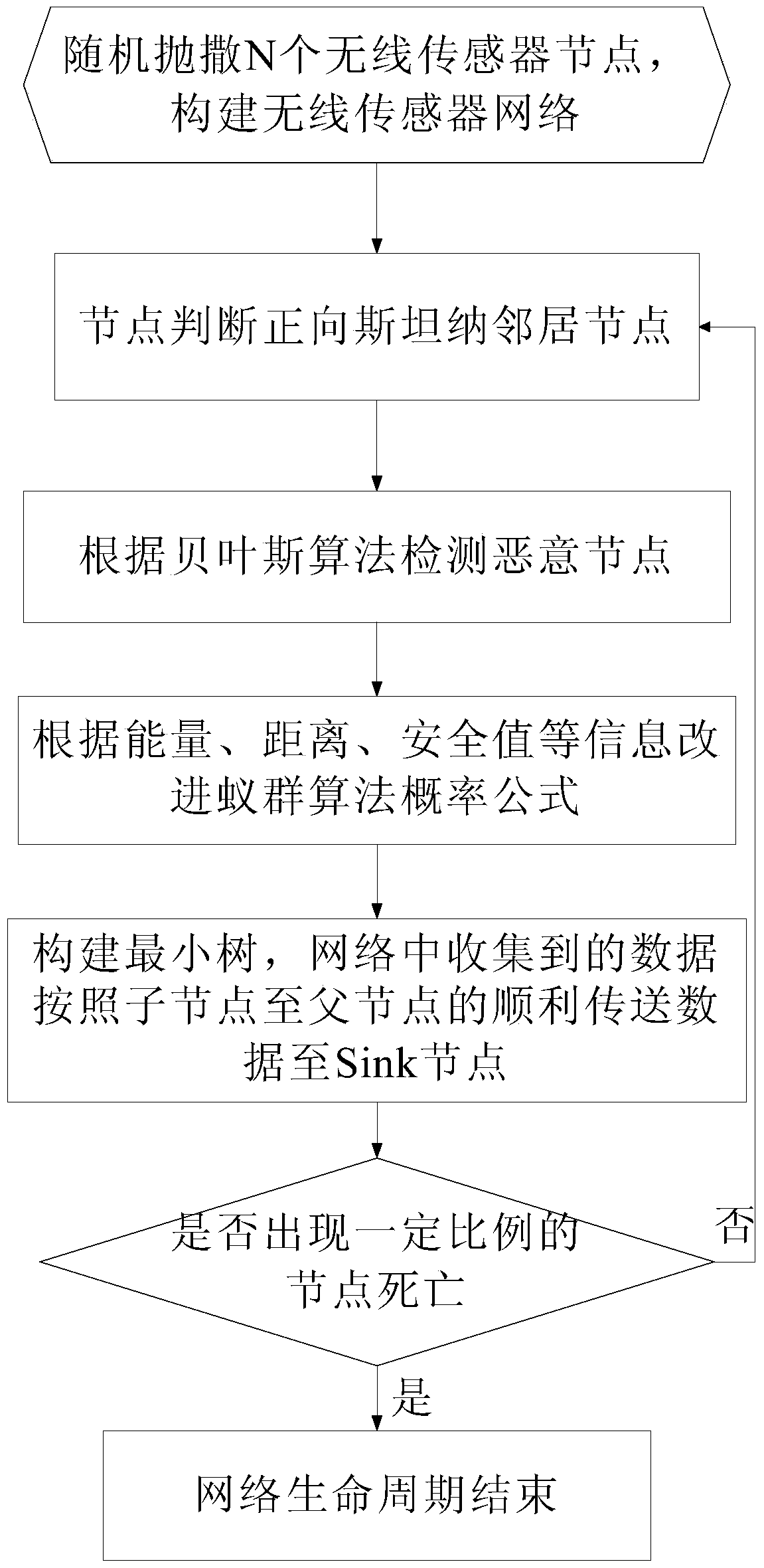 - 项目简介 本发明公开了无线传感器中一种基于蚁群算法的鲁棒优化算法。其实现步骤是:网络中节点布置完毕之后,节点根据自己地理信息计算其正向斯坦纳邻居节点区域,并将斯坦纳节点加入到自己信息表。节点间根据局部信息按照贝叶斯检测算法检测网络中的恶意攻击节点并标记为非选择中继节点。根据能量、距离、各节点安全值等信息改进蚁群算法路径概率公式。构造完树后,父节点将收集到子节点的数据与自己感知的数据聚合成一个数据包后,沿着建立的路径发送给网关SINK节点。本发明与现有技术相比,具有可扩展性强、网络生命周期长、鲁棒性强、安全性强等特点,可用于实现不同规模无线传感器网络的大数据收集与传输。