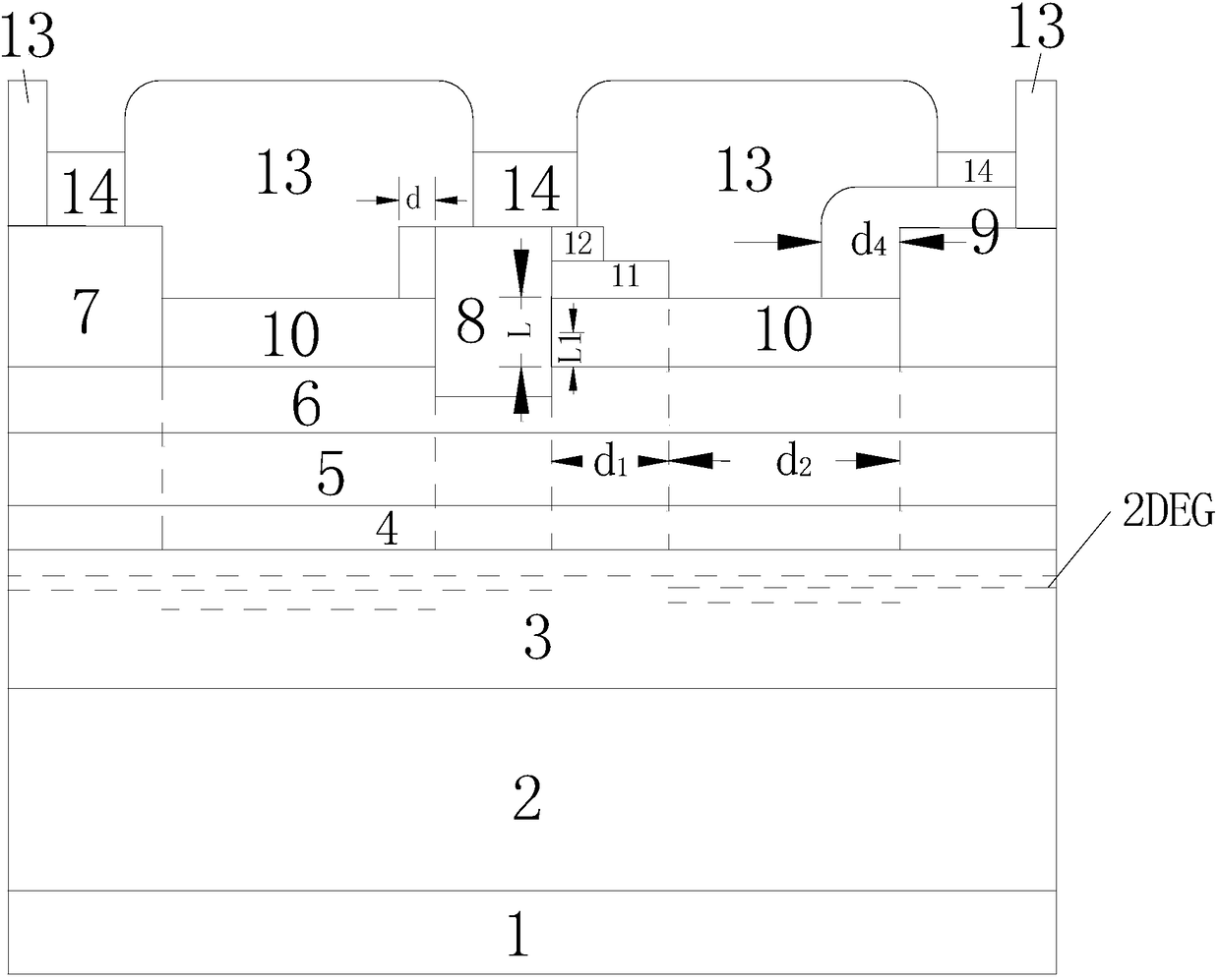 - 项目简介 本发明公开了一种基于超结漏场板的槽栅高压器件及其制作方法,自下而上依次包括衬底、GaN缓冲层、GaN沟道层、AlN隔离层、本征AlGaN层和AlGaN势垒层,所述AlGaN势垒层上间隔设有源极、栅极和复合漏极,所述栅极和复合漏极之间还设有线性AlGaN层,线性AlGaN层上设有p‑GaN层,P‑GaN层上设有基极,上述结构的顶层还间隔淀积有钝化层,所述钝化层的间隔内淀积有加厚电极。本发明在器件导通时的导通电阻得到减小,而在截止状态时的击穿电压得到提高,兼顾了器件击穿电压的提高与导通电阻的减小,同时采用槽栅结构,增强了栅极对沟道2DEG的调控作用,提高了器件的频率性能。