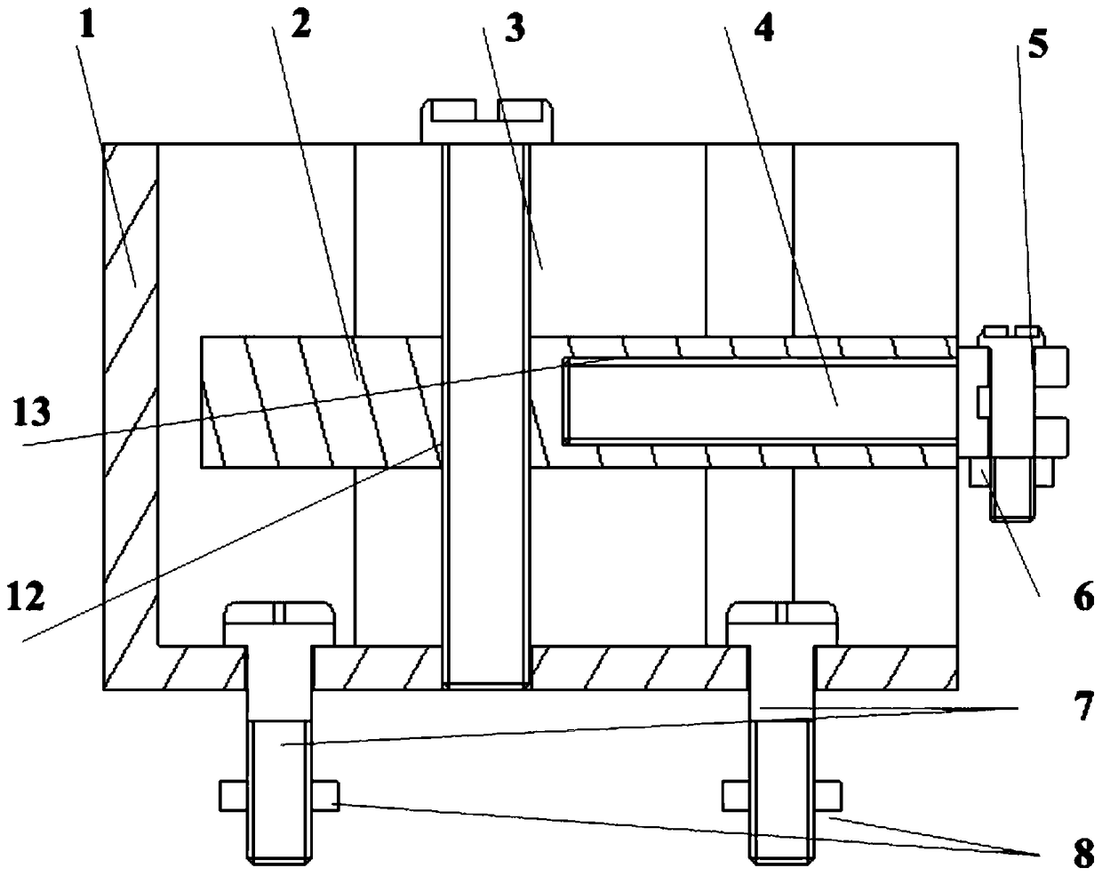 - 项目简介 本发明涉及一种环形桁架式可展开天线薄膜反射面与桁架的连接机构,其特征是:包括:基座、滑块、调节螺钉、开槽调节螺栓、限位螺钉、锁定螺母、安装螺栓、安装螺母;所述基座为一边开口的长方形槽体结构,在槽体内侧的两个长边上分别各有两个滑槽;一个长方形的滑块以长度方向被限位在滑槽内,使滑槽与滑块紧配合;所述滑块上有第一螺纹孔,调节螺钉与第一螺纹孔的螺纹连接,通过调节螺钉控制滑块在长方形槽体内上下移动。本发明具有工艺简单、使用方便、精度高、可展开等特点。