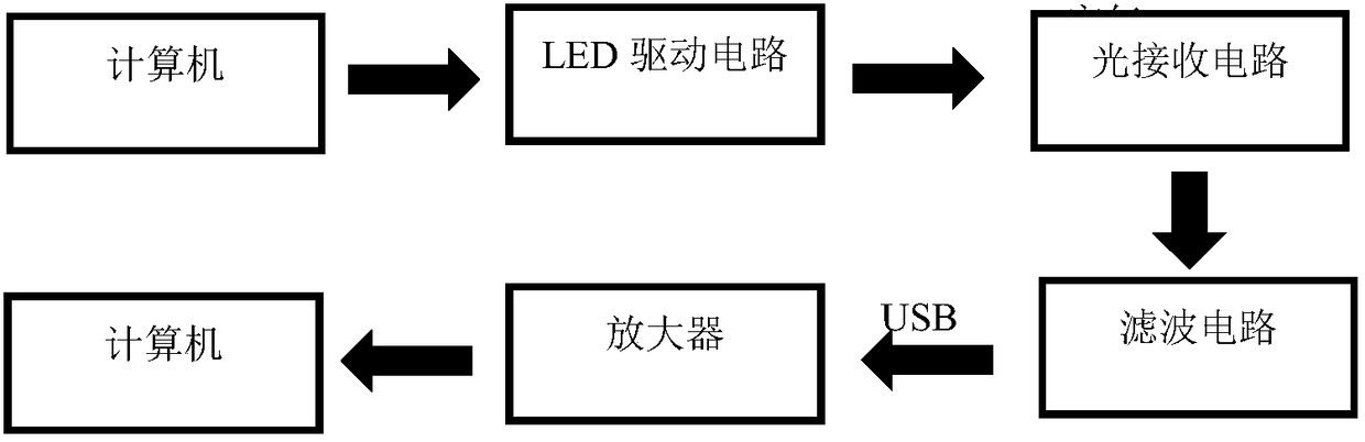 - 项目简介 本实用新型公开了一种基于LED可见光的无线通信系统,包括:计算机,用于发送数据,通过USB转串口模块把将要发送的数据转化成电信号的形式,传送给LED驱动电路,并通过USB转串口模块接收来自光接收电路的电信号;LED驱动电路:将来自计算机的电信号施加在三极管上,用来控制LED的明灭;光接收电路:将接收到的光信号转换成电信号,然后通过比较器将输出电压发送出去;连接电路:用于计算机USB接口与LED驱动电路和光接收电路之间的连接。本系统白光LED结合了光纤通信和微波通信的优点,可以实现通信和照明的双重功能,将成为室内无线宽带接入网和室外智能通信系统的发展方向。