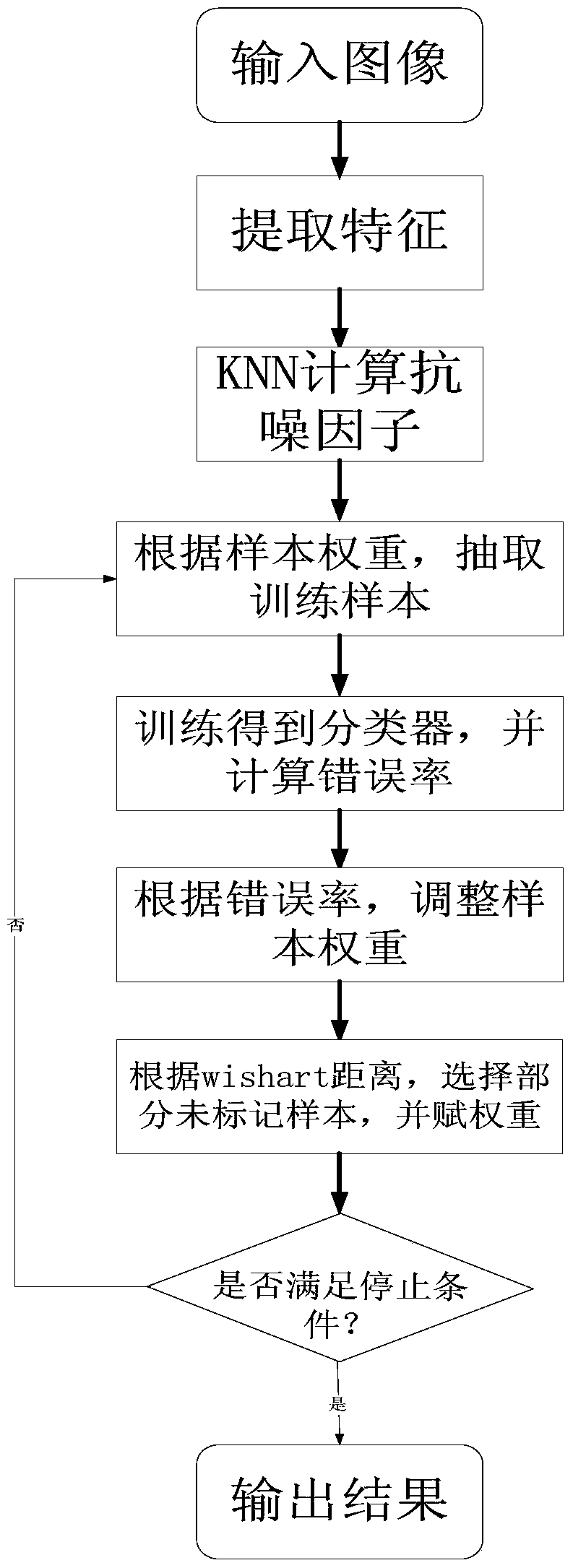 - 项目简介 本发明公开了一种基于集成学习的极化SAR图像半监督分类方法,其实现步骤为:(1)输入一幅极化SAR图像;(2)提取极化SAR图像的散射特征,偏振参数和纹理特征;(3)利用Knn算法计算样本的抗噪因子;(4)根据样本的权重,抽取训练样本;(5)训练得到分类器,并计算错误率;(6)根据错误率调整样本的权重;(7)根据Wishart距离,选择置信度高的未标记样本,加入到训练集,并赋权重;(8)判断是否满足停止条件,满足则结束并输出分类结果,否则转到(4);本发明组合偏振参数,散射特征和纹理特征,能够更全面地描述地物真实情况,并利用部分未标记样本,丰富了原始训练样本,获得了较好的分类精度。