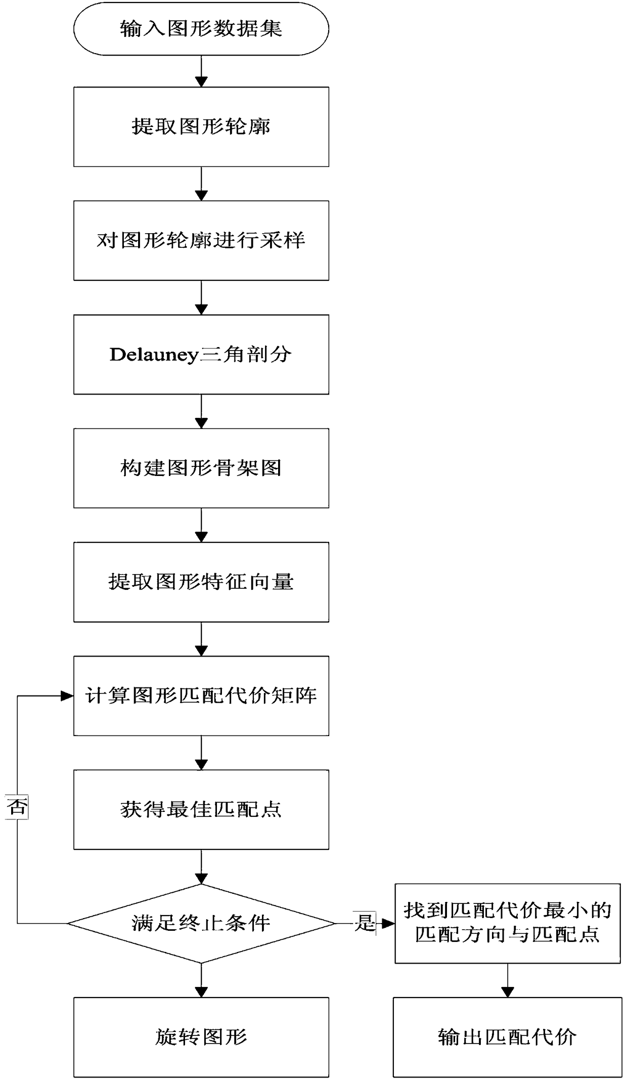 - 项目简介 本发明属于模式识别与计算机视觉技术领域,具体公开了一种基于骨架图的快速图形匹配与识别的方法,主要解决了在保证图形识别准确度的同时,加快了图形的匹配速度。其实现步骤包括:(1)用经典canny边缘检测算子提取图形的轮廓;(2)对图形轮廓进行等间距的采样;(3)以采样点作为三角形顶点,剖分图形;(4)构建图形的内部骨架结构图;(5)提取图形骨架图的特征向量;(6)计算图形的匹配代价矩阵;(7)找到图形最佳匹配点;(8)旋转图形骨架结构图,重复步骤(6)‑(7);(9)输出最小匹配代价作为图形相似度距离。本发明能够在维持一定识别准确度的情况下,有效地降低了形状描述符算子的复杂度,加快了图形的匹配速度。